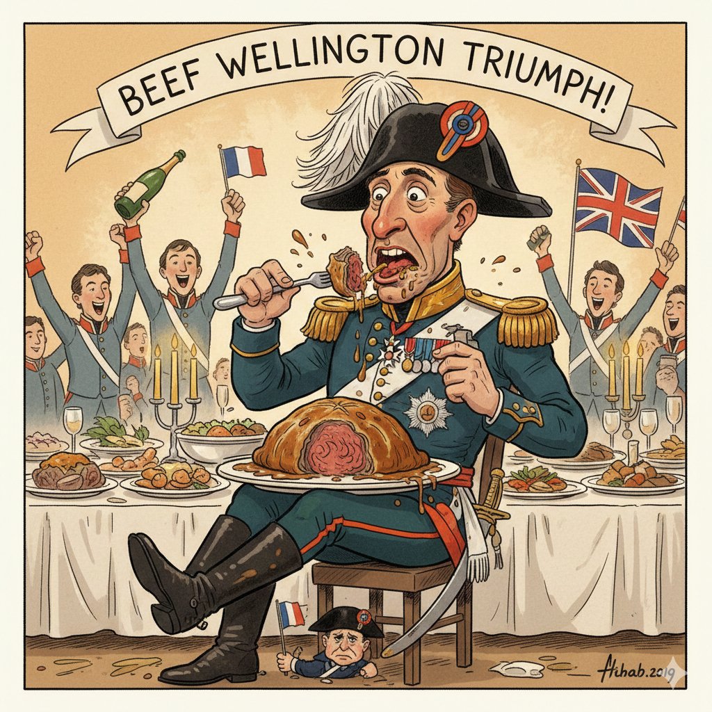 Toch heeft de naam waarschijnlijk wél iets met hem te maken — maar indirect. Na de Napoleontische oorlogen was de Britse elite niet happig op Franse namen aan tafel. Het zou daarom best kunnen dat filet en croûte simpelweg een patriotischer etiket kreeg: Beef Wellington in plaats van een Franse benaming. Er is zelfs een alternatieve verklaring waarin de vorm van het gerecht geassocieerd werd met de beroemde “Wellington-laarzen”, maar ook dat is nooit bewezen.