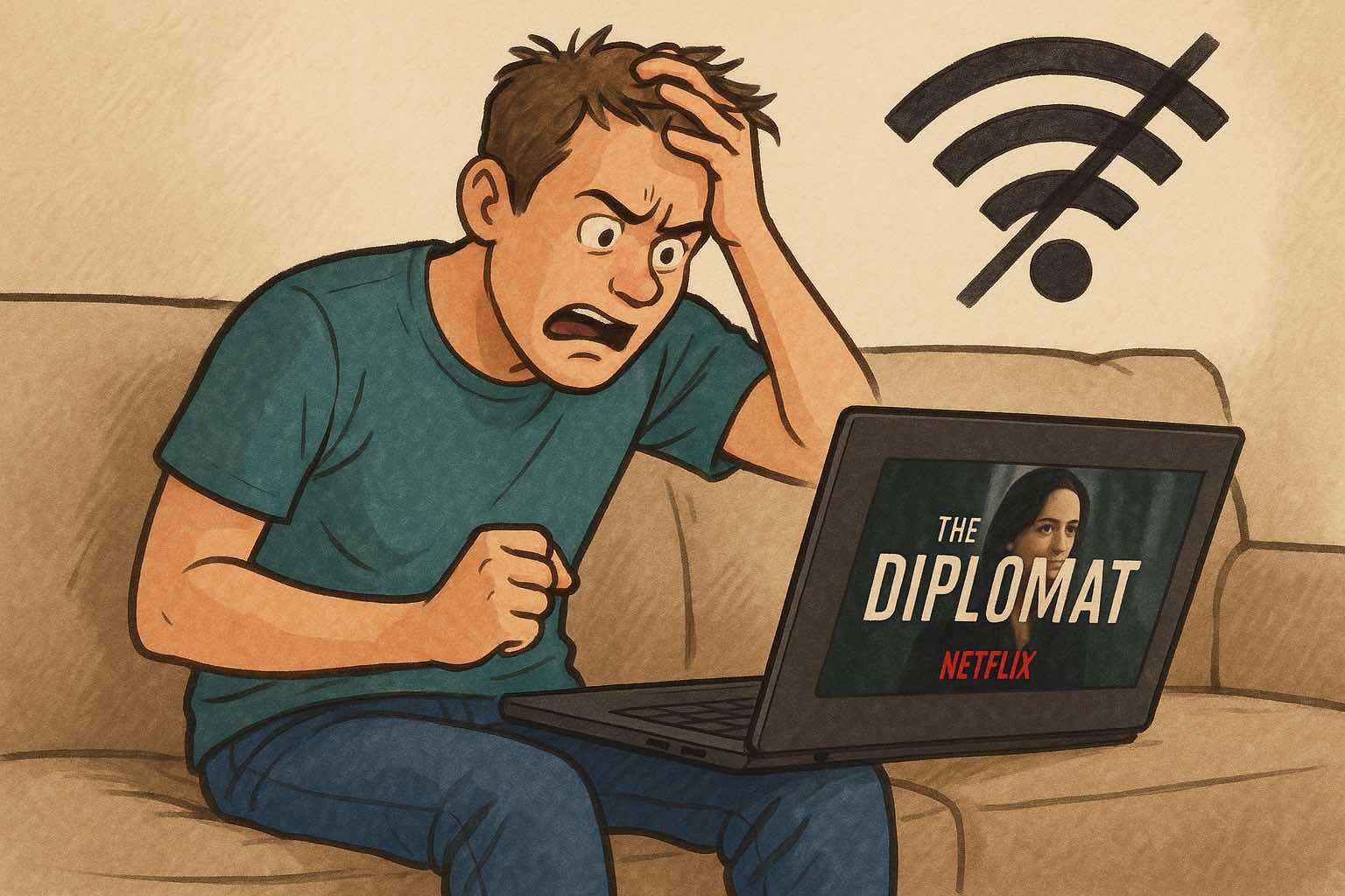 Hieronder een plaatje die wifi frustraties moet weergeven als een mens lekker aan het Netflixen slaat. Dit plaatje bewijst vooral dat AI nog niet geweldig werkt…